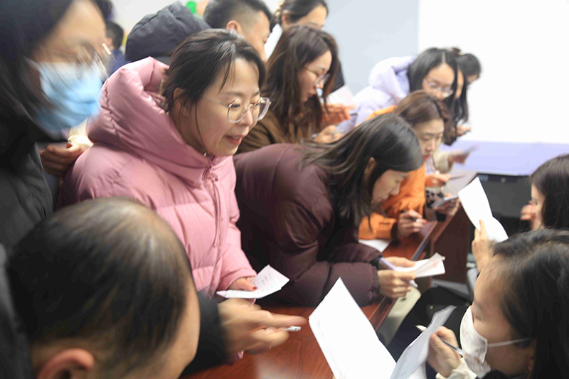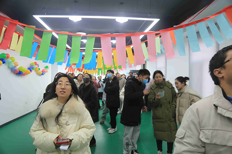 活動(dòng)現(xiàn)場設(shè)置了猜燈謎、蒙眼喂食、坐爆氣球、數(shù)字炸彈、夾紙運(yùn)杯等趣味活動(dòng),現(xiàn)場熱鬧非凡,趣味盎然。“蒙眼喂食”活動(dòng)考驗(yàn)參與者之間的溝通與協(xié)作,蒙眼的同事小心翼翼地摸索著,而指揮的同事則用語言引導(dǎo)著隊(duì)友,參與者們?nèi)橥度?,觀眾們熱情高漲;在“坐爆氣球”活動(dòng)中,大家你追我趕,氣球爆破聲和歡笑聲交織在一起,氣氛熱烈;猜燈謎區(qū)域更是人氣高漲,彩色的紙條上寫滿了各種謎題,涵蓋了歷史、文化、法律、生活常識(shí)等多個(gè)領(lǐng)域,大家開動(dòng)腦筋,認(rèn)真思考,猜對燈謎后臉上洋溢著喜悅的笑容。